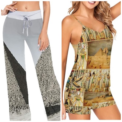 Cubre tu cuerpo de pies a cabeza con las mejores telas de oriente y muestra la lado misterioso con las ilustraciones de las pirámides egipcias. Ves a la moda.